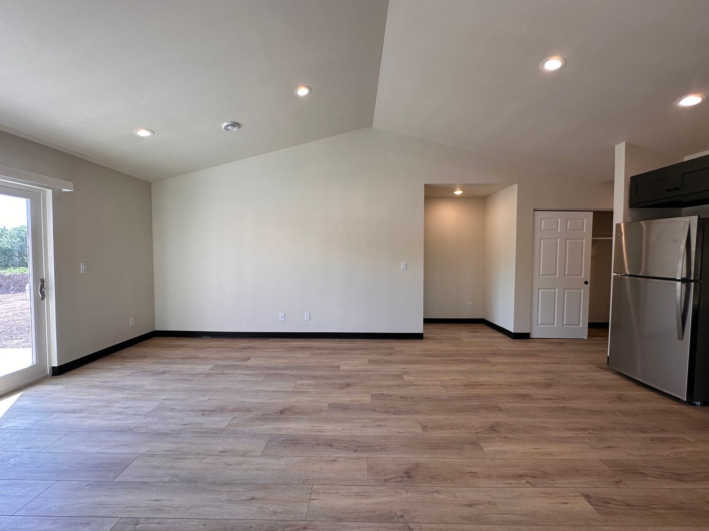 Be the first to live in this stunning new-build duplex, currently in its second stage of completion. This spacious, single-level home features 3 bedrooms and 2 bathrooms, offering the perfect blend of comfort and modern design. Enjoy the ease of zero-entry living, with everything thoughtfully laid out on one floor. Luxury Vinyl Plank flooring runs throughout the home, adding durability and style, while vaulted ceilings create an airy, open feel in the main living spaces. The kitchen and laundry areas are equipped for your convenience, with a washer and dryer included. The large primary suite features a walk-in closet and a private ensuite bathroom, making it a true retreat. Step outside to enjoy scenic views from your private patio, with a spacious backyard that offers both privacy and room to relax.